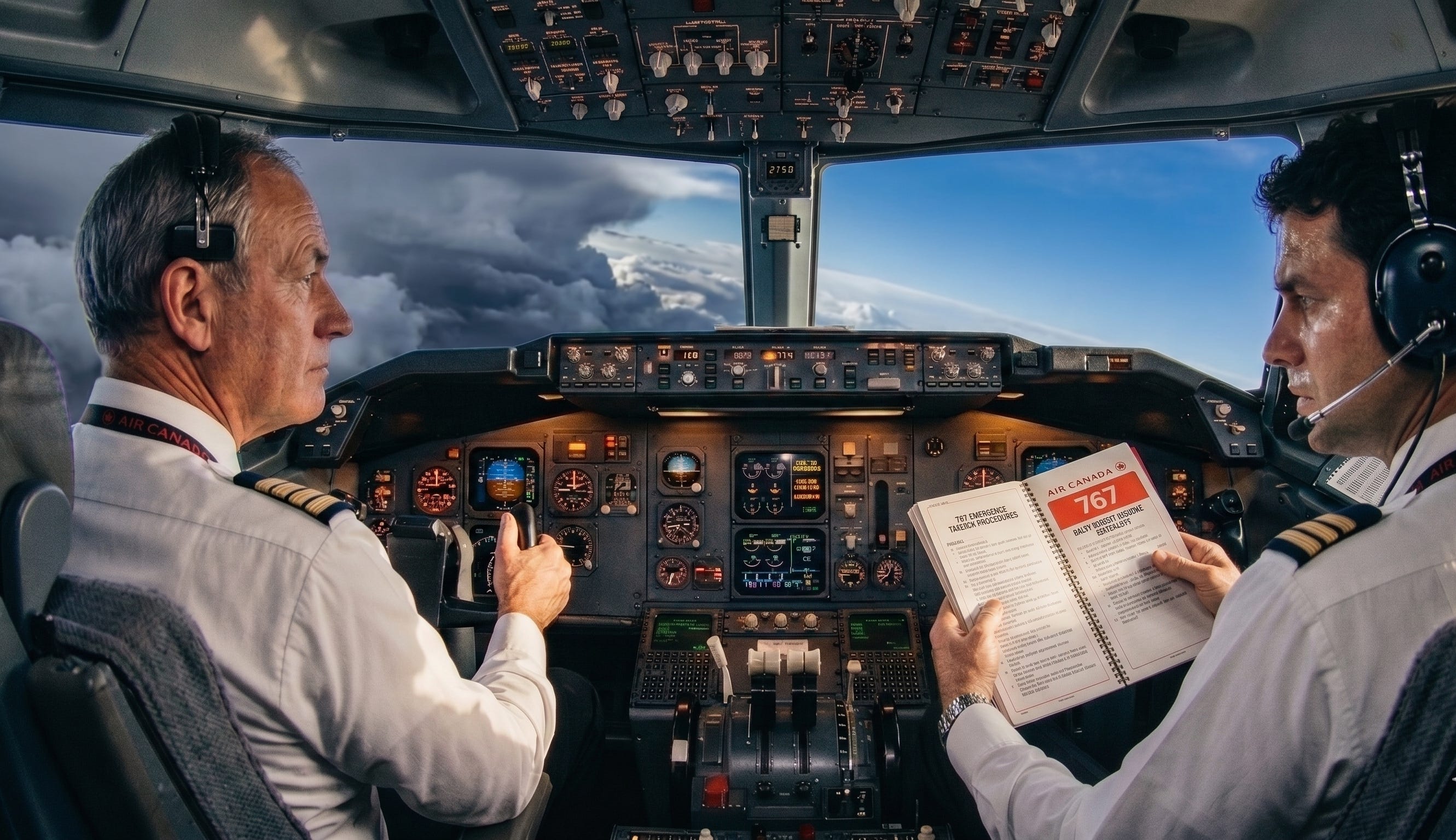 A brand-new Boeing 767, just five months old, is cruising at 41,000 feet over a place called Red Lake, Ontario.