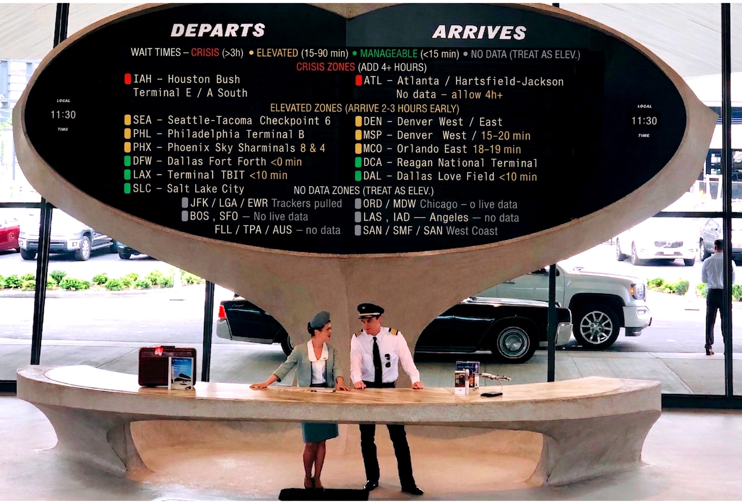 The airports running surprisingly well right now: DFW, DCA, DTW, CLT, SLC, LAX, BWI — under 15 minutes at most checkpoints.